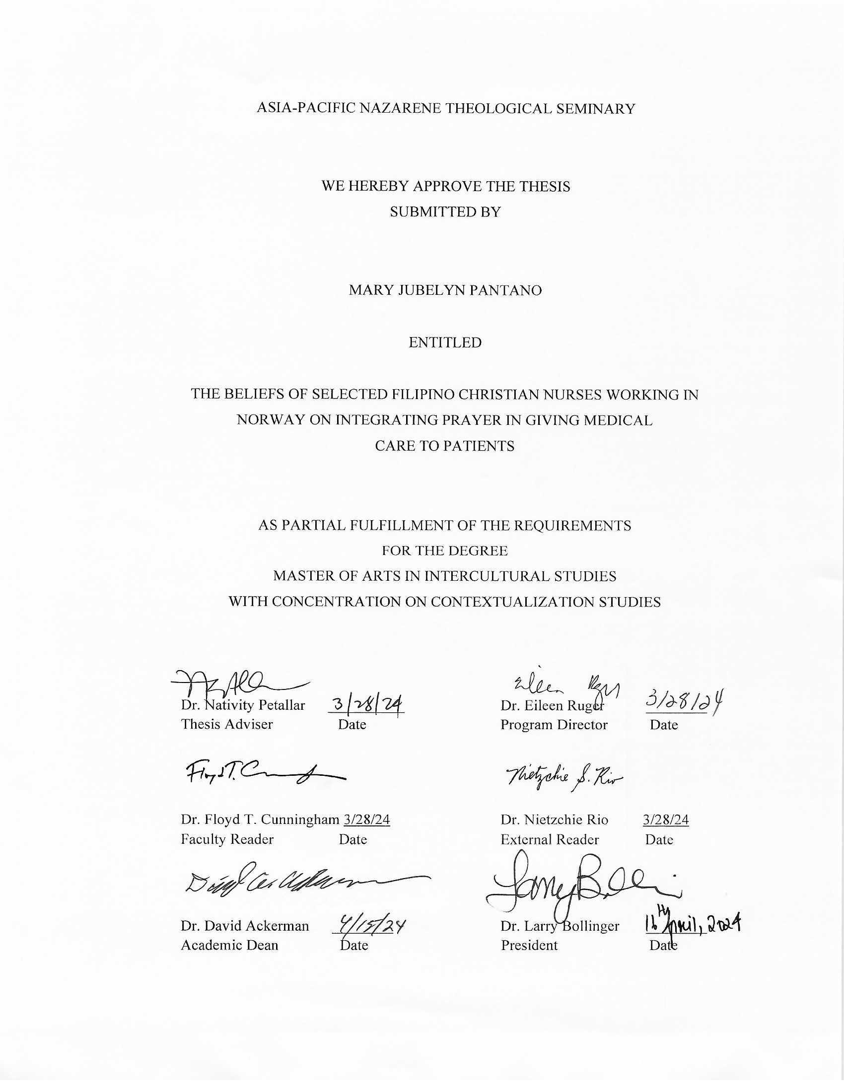 The beliefs of selected Filipino christian nurses working in Norway on integrating prayer in giving medical care to patients